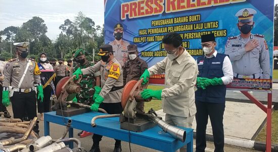 OKU Selatan Sumsel–Satuan Lalu Lintas (Satlantas) Polres Kabupaten Ogan Komering Ulu (OKU) Selatan musnahkan sebanyak 175 unit knalpot racing hasil sitaan dari