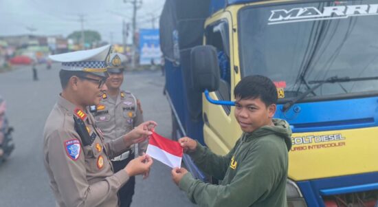 Jelang HUT RI Ke-80, Sat Lantas Polres OKU Selatan Bagikan Bendera Merah Putih