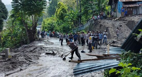 Warga, BPBD, TNI dan Polres OKU Selatan Bersihkan Material Longsor
