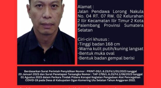 DPO Kasus Covid-19 Kejari OKU Selatan, Divonis 8 Tahun Penjara Secara In Absentia