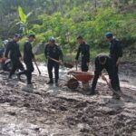 Polisi Bersama Instansi Terkait dan Masyarakat Evakuasi Material Tanah Longsor
