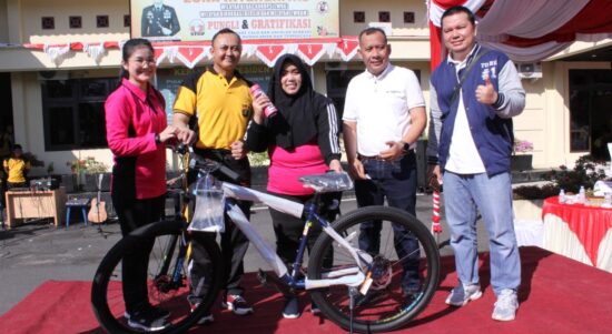 OKU Selatan Sumsel–Sambut hari jadi Bhayangkara ke-76 tahun 2022, Polres Ogan Komering Ulu (OKU) Selatan, Polda Sumsel menggelar jalan santai, sepeda santai