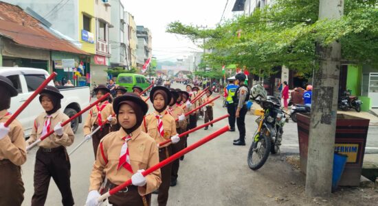Amankan Gerak Jalan Pramuka, Polres OKU Selatan Libatkan Puluhan Anggota