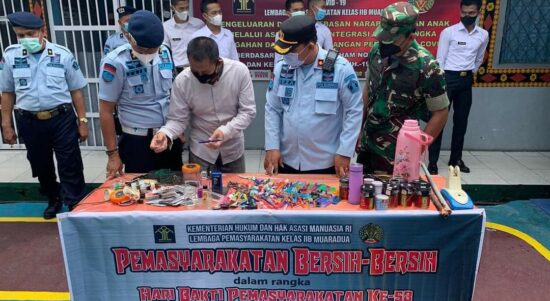 OKU Selatan Sumsel–Lembaga Pemasyarakatan Kelas IIB Muara Dua melaksanakan razia gabungan bersama TNI/Polri di kamar hunian warga binaan lapas Muara Dua pada