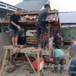 Bhabinkamtibmas Polres OKU Selatan Bersama Warga Gotong Royong Bangun Pos Kamling