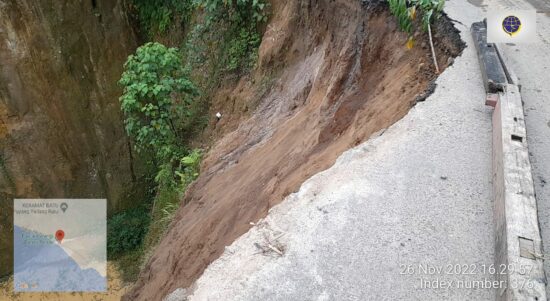 OKU Selatan Sumsel–Tingginya curah hujan yang berlangsung beberapa waktu lalu hingga hari ini menyebabkan ruas jalan lintas Muaradua-Lampung tepatnya di Desa Simpang
