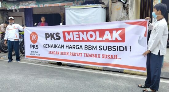OKU Selatan Sumsel–DPD PKS Kabupaten OKU Selatan menyatakan sikap tegas penolakan terhadap kenaikan harga bahan bakar minyak (BBM) subsidi. Mereka pun menggelar