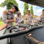 OKU Selatan Sumsel–Ratusan kendaraan dinas di Mapolres OKU Selatan dilakukan pemeriksaan oleh Biro Logistik Polda Sumsel di halaman Mapolres, Rabu (08/05/2024). Pengecekan