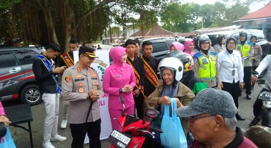 Kapolres dan Ketua Bhayangkari OKU Selatan Bagi Takjil Gratis