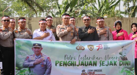 OKU Selatan Sumsel–Polres OKU Selatan bersama jajaran polsek dan pemda melaksanakan penanaman pohon secara serentak. Aksi ini dilakukan sebagai bentuk kepedulian Polri