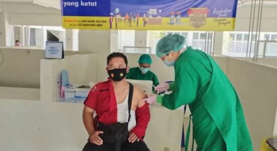 Baturaja – Sebanyak 50 anggota Polres Ogan Komering Ulu, Sumatera Selatan disuntik vaksin Covid-19 tahap pertama agar kebal dari penularan virus corona