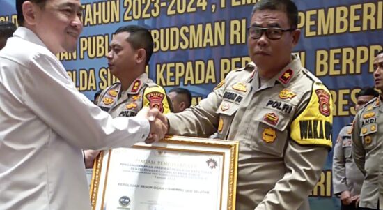 Beri Pelayanan Terbaik, Polres OKU Selatan Terima Penghargaan Ombudsman RI