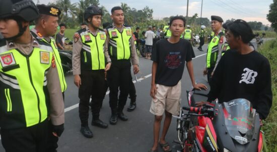 OKU Selatan Sumsel–Kapolres Polres OKU Selatan bersama PJU dan Polsek Simpang Martapura membubarkan balap liar di jalan raya Muaradua-Simpang dan jalan raya
