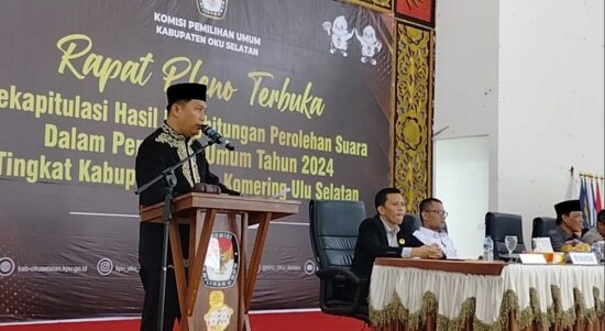 OKU Selatan Sumsel–Komisi Pemilihan Umum (KPU) kabupaten OKU Selatan merampungkan kegiatan rekapitulasi penghitungan suara tingkat kabupaten di gedung kesenian Muaradua. Selasa (05/03/2024)