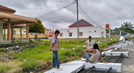 OKU Selatan Sumsel–Hujan deras disertai petir yang terjadi pada Sabtu malam hingga Minggu dini hari (30/04/2023) berdampak pada robohnya pagar RSUD Muaradua