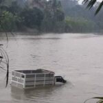 Diduga Mengantuk, Pick Up Warna Putih Terjun Bebas Mandi di Sungai Komering OKU Selatan