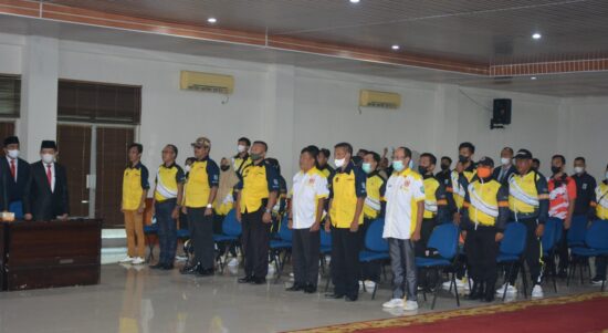 OKU Selatan Sumsel–Bupati OKU Selatan, Popo Ali didampingi Wakil Bupati, Ketua DPRD, Ketua KONI dan kepala Dispora OKU Selatan, menyerahkan secara langsung